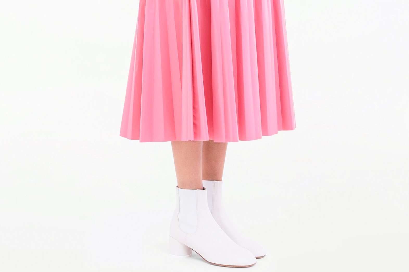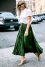 Đơn giản nhất và không bao giờ có thể “sai sai” là kết hợp một chiếc áo trắng với chân váy xếp ly bất kỳ. Một đôi giày cao gót quai mảnh sẽ làm trang phục thanh lịch một cách nhẹ nhàng.