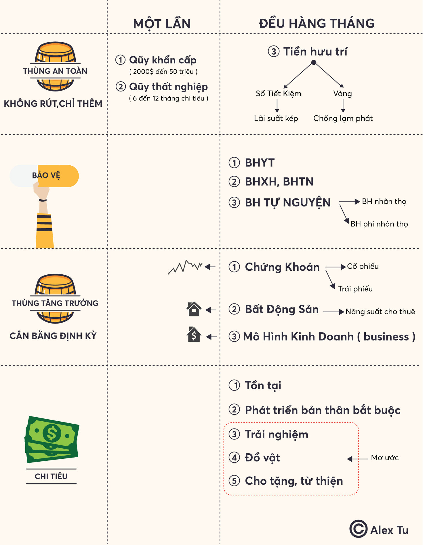 TRẢ CHO BẢN THÂN = THÙNG AN TOÀN + BẢO VỆ + THÙNG TĂNG TRƯỞNG
